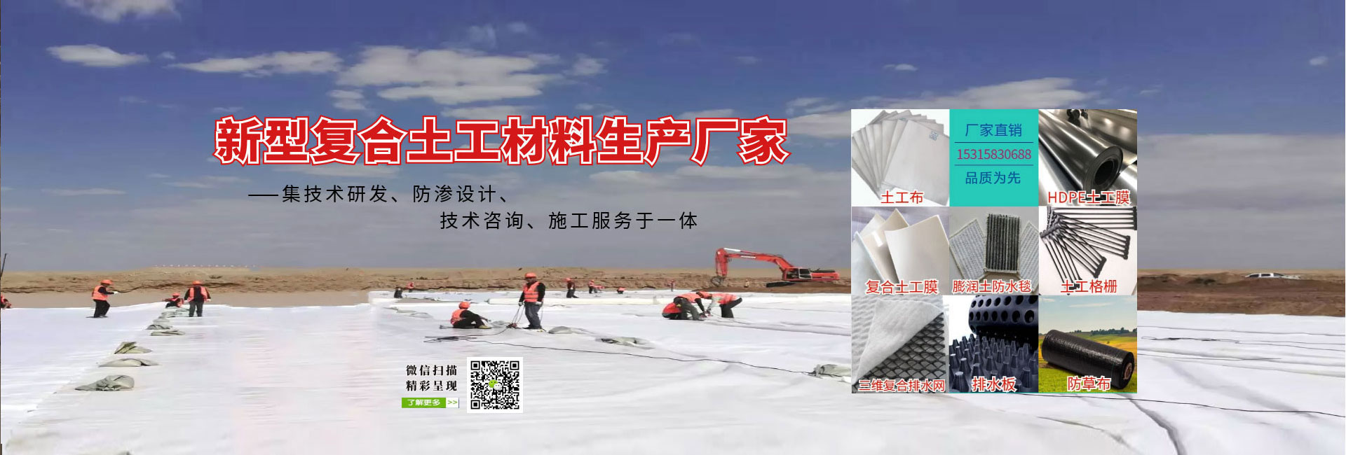 公司產(chǎn)品有聚酯長(zhǎng)絲土工布、滌綸短絲無紡?fù)凉げ肌?fù)合土工膜、防滲土工布、土工膜、防水板